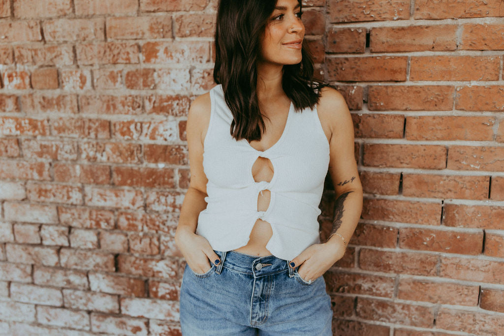 This ribbed twisted tank was made to bring a little interest to your everyday wardrobe. Featuring a twisted open-front detail and a comfortable stretch fit, it’s the kind of piece you’ll reach for when you want to feel both cozy and put together. Perfect styled with your favorite denim, trousers, or layered under knits.